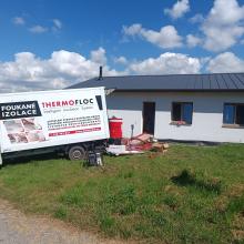 Zateplení bungalovu během jednoho dne - pomocí foukané izolace THERMOFLOC. Kompaktní tloušťka izolace 30 cm.