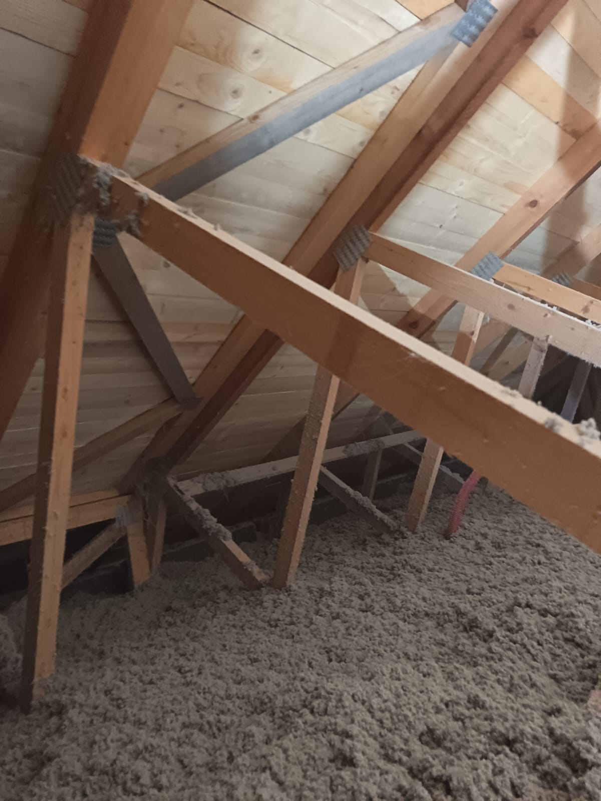 V této novostavbě byla nafoukána izolace ThermoFloc ve výšce 30cm. Celulózové vlákno se výborně hodí do novostaveb, práce totiž byla provedena v řádu pár hodin, díky speciální metodě výroby je navíc celulóza odolná proti navlhnutí a požáru.