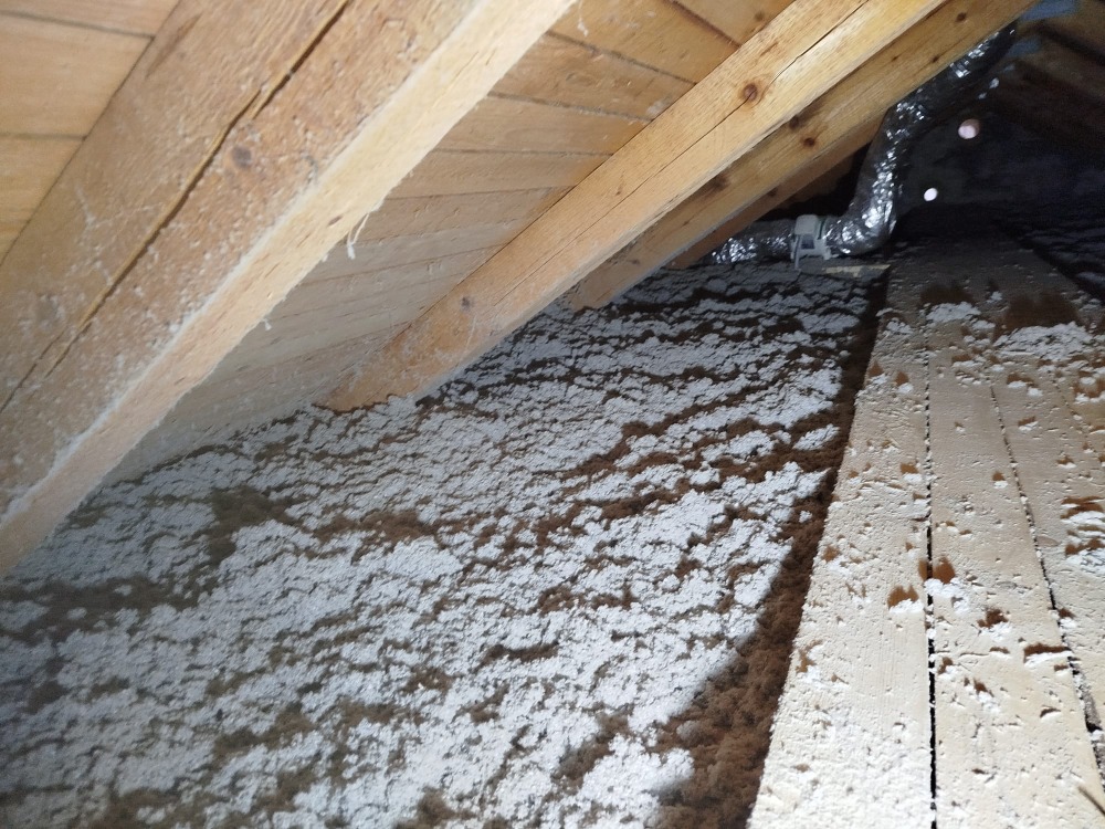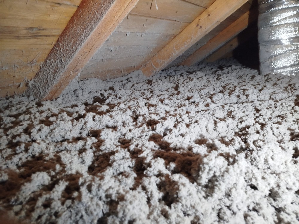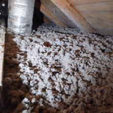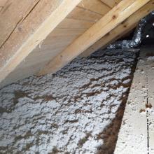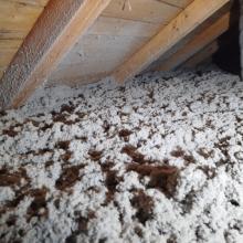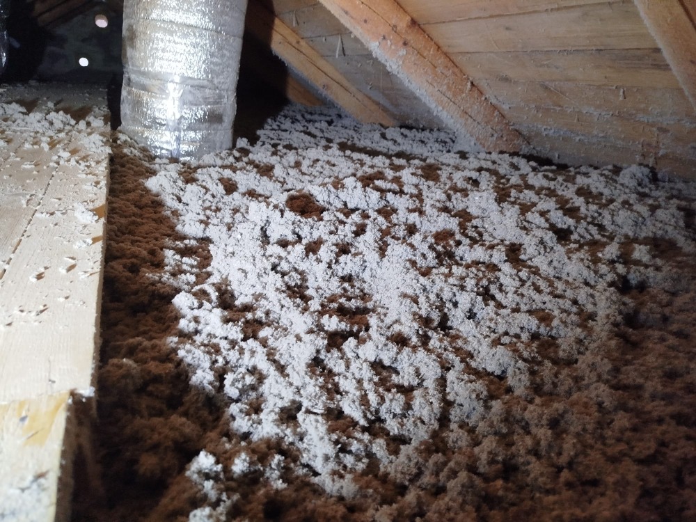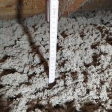 Rodinný dům Dětmarovice - zateplení podlahy na půdě. Byla provedena kompaktní tloušťka foukané izolace Thermofloc ve vrstvě 20 cm.